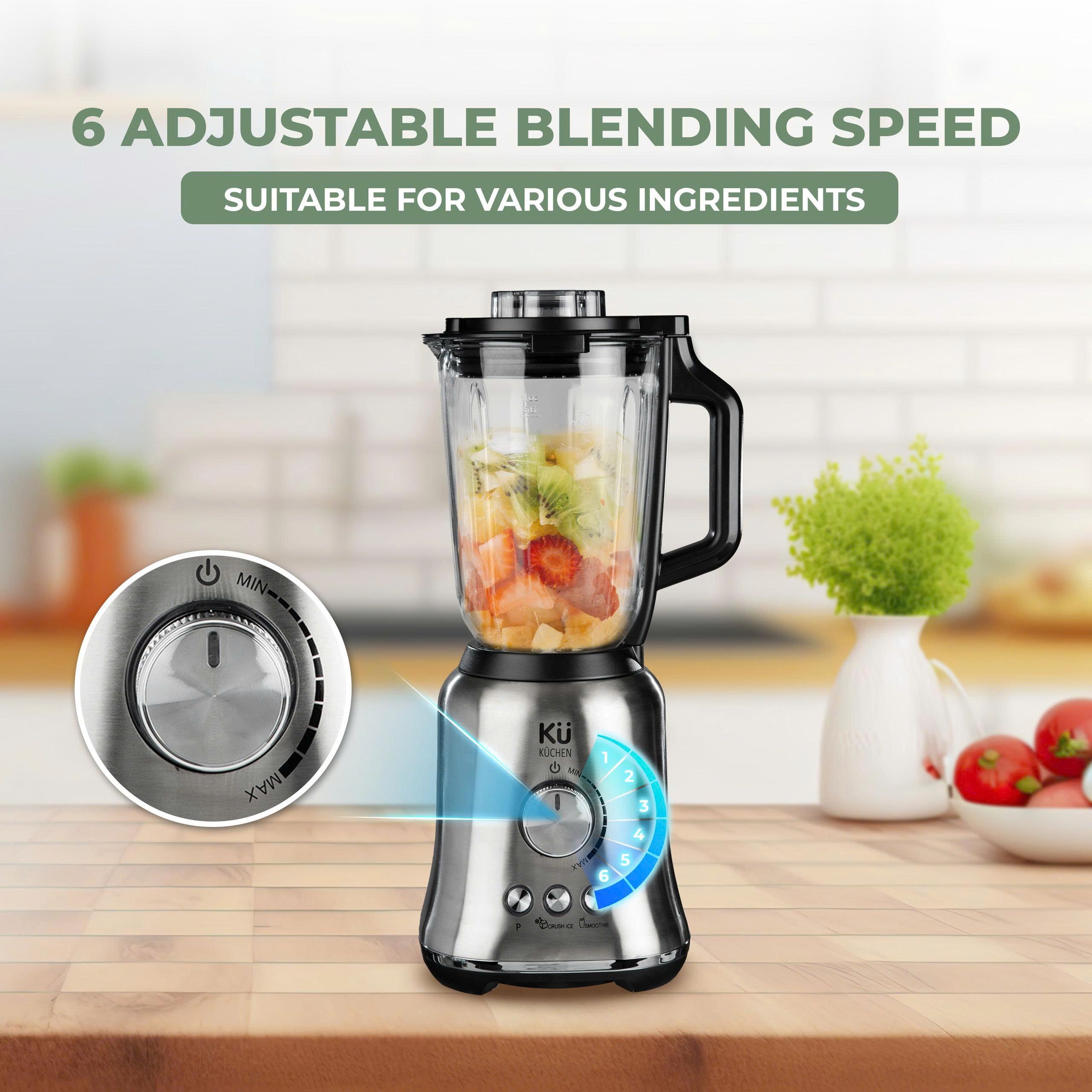 Six-speed function with adjustable rotation cycles makes it versatile for mixing and blending.