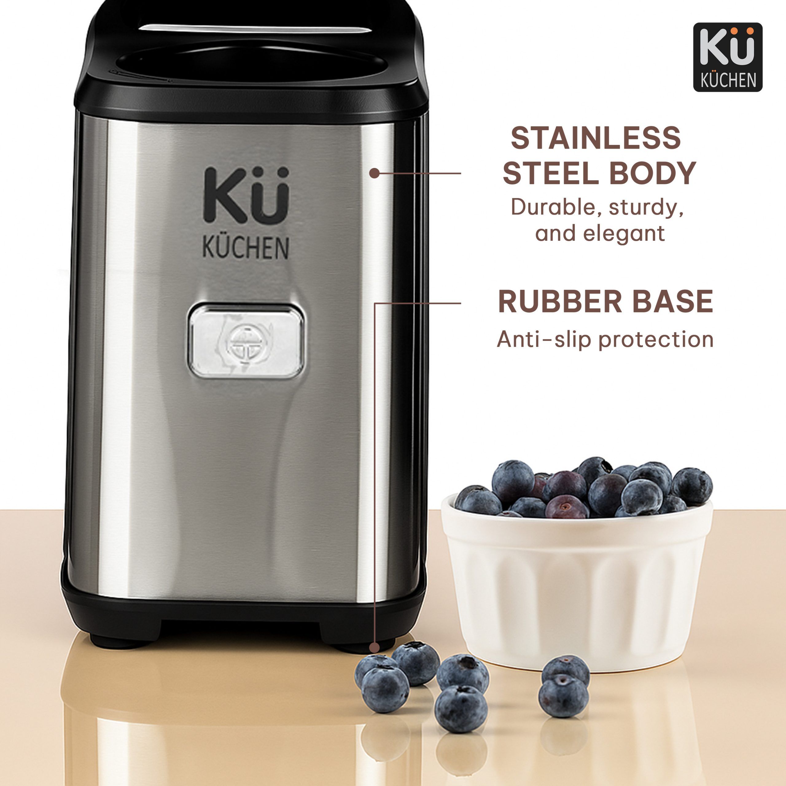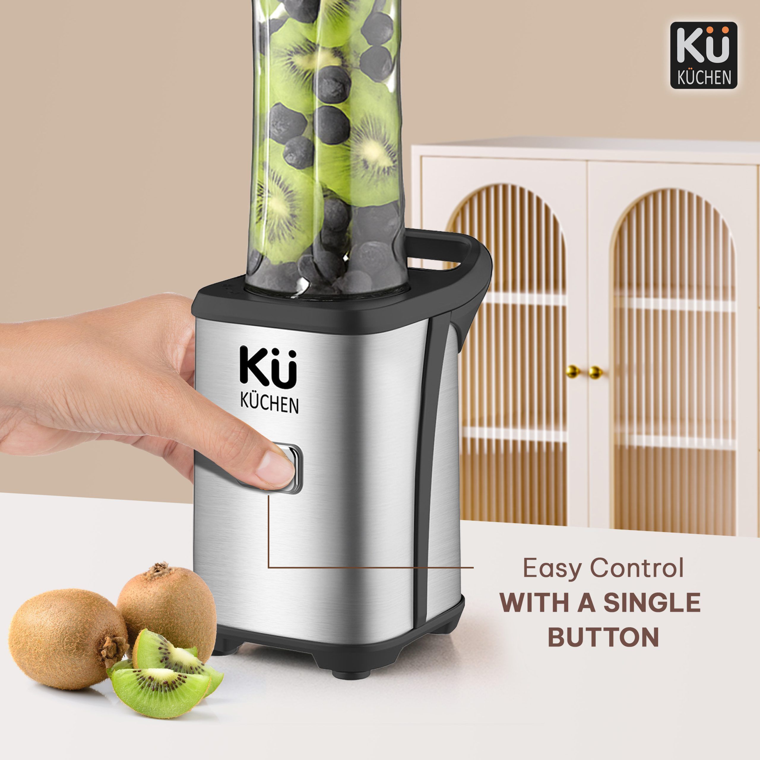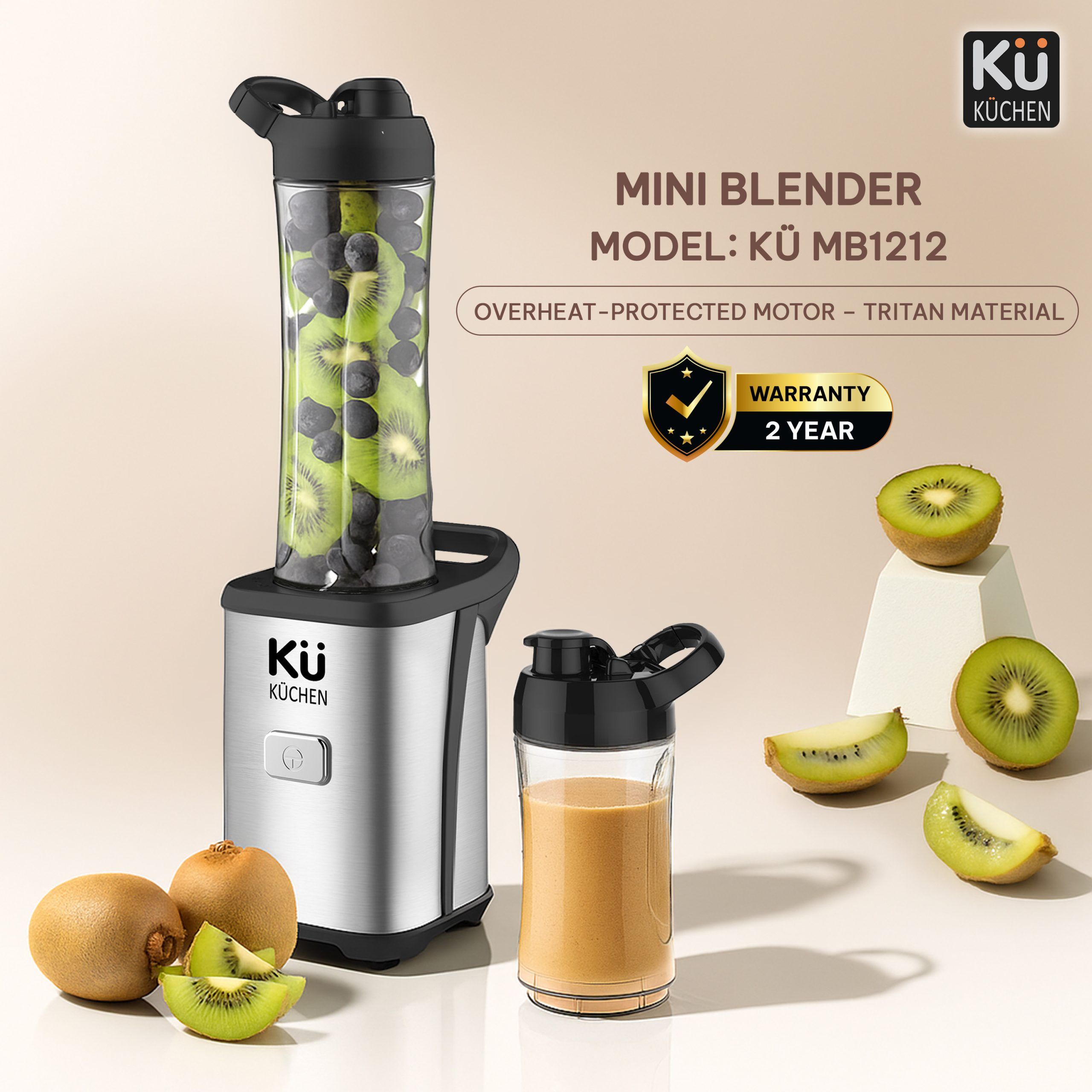 The KU MB1212 mini blender features a modern, robust design with a trendy black-gray tone that never goes out of style.