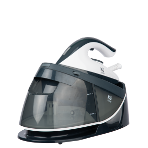 The iron is separate from the water tank, making it lighter to use. The iron connects to the water station via a long hose for increased flexibility. The steam hose is wrapped in thick fabric, providing safe insulation and durability.