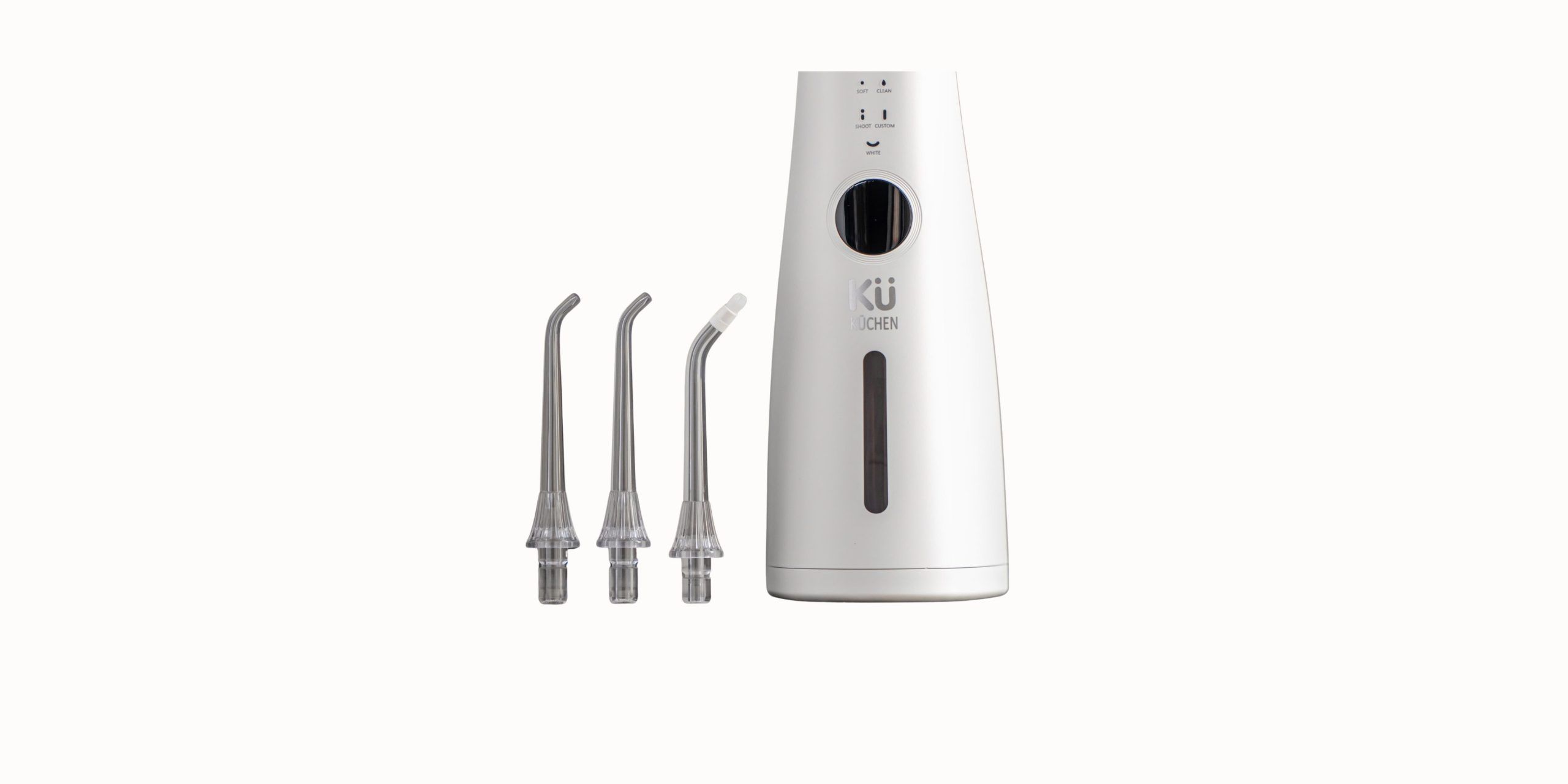 Complete Set: Cordless flosser, charging cable, 3 nozzles, user manual.